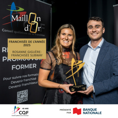 Montréal, le 28 octobre 2025 — Le Conseil québécois de la franchise (CQF) a tenu son prestigieux Gala Maillon d’Or 2025, une soirée incontournable qui a réuni plus de 300 invités pour célébrer la vitalité, la diversité et la réussite du monde de la franchise au Québec.